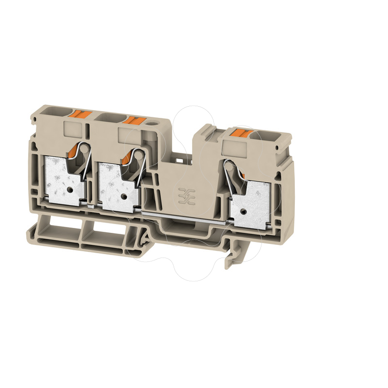Bloque de bornes de paso, PUSH IN, 16 mm², 1000 V, 76 A, Número de conexiones: 3. Regleta de bornes para la conexión o el empalme de conductores con contacto garantizado permanente. Acero endurecido capaz de soportar fuerzas mecánicas y revestimiento de cobre para garantizar la máxima conductividad.